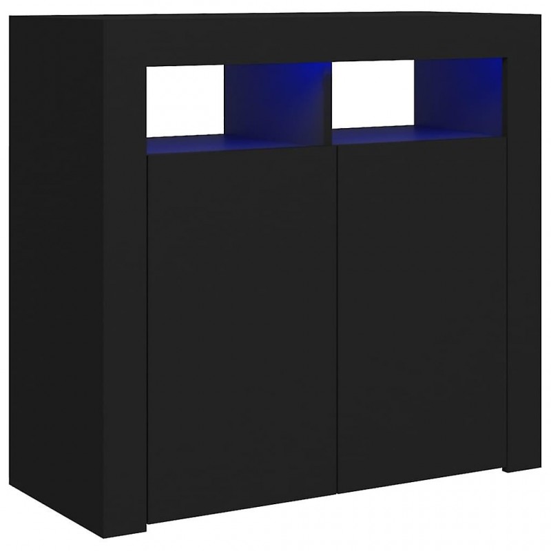 Cette commode avec éclairage LED est pratique et constitue un complément idéal à votre maison. La construction robuste de ce buffet le rend extrêmement durable et robuste. Il offre également beaucoup d'espace de stockage pour les livres, appareils multimédias et autres objets. Le plateau de table robuste est idéal pour présenter des objets décoratifs, des cadres photo ou des plantes en pot. Cette armoire est dotée de lumières LED RVB qui ont différents menus pour changer la couleur des lumières et ajuster automatiquement la couleur. Les lumières LED soulignent le look moderne et contribuent au sentiment de tendance. Remarque : le produit dispose d'un port USB, mais la source d'alimentation USB certifiée 5 V n'est pas incluse.