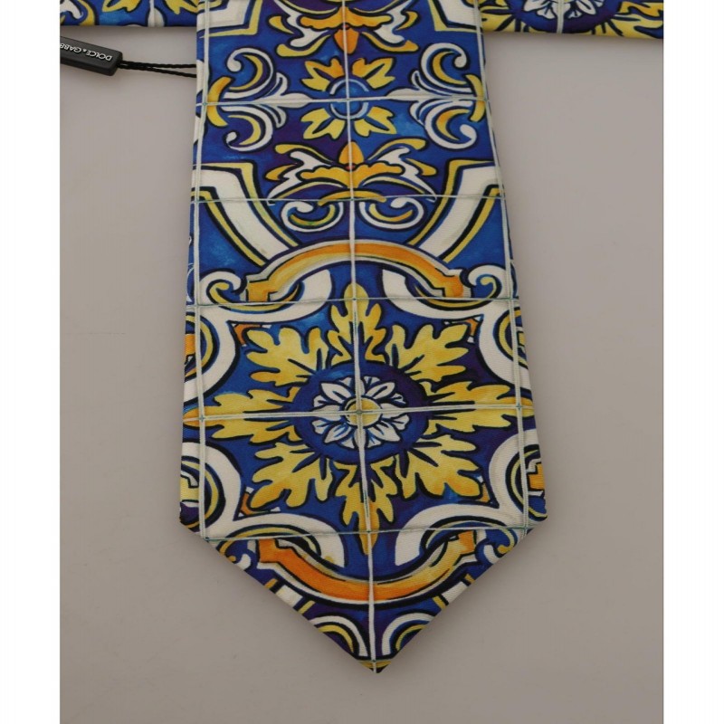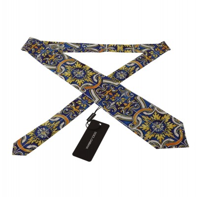 Absolument superbe 100% authentique, tout neuf avec étiquettes, cravate Dolce & Gabbana, motif majolique multicolore, 100% soie, fabriquée en Italie, largeur : 10 cm, accessoire polyvalent, matière : 100 % soie