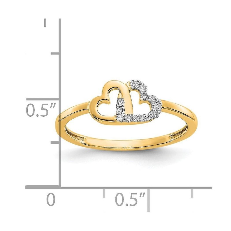 Bague en or 10 carats avec double cœur et diamants de 2 mm, taille 7,00, bijoux cadeaux pour femmes