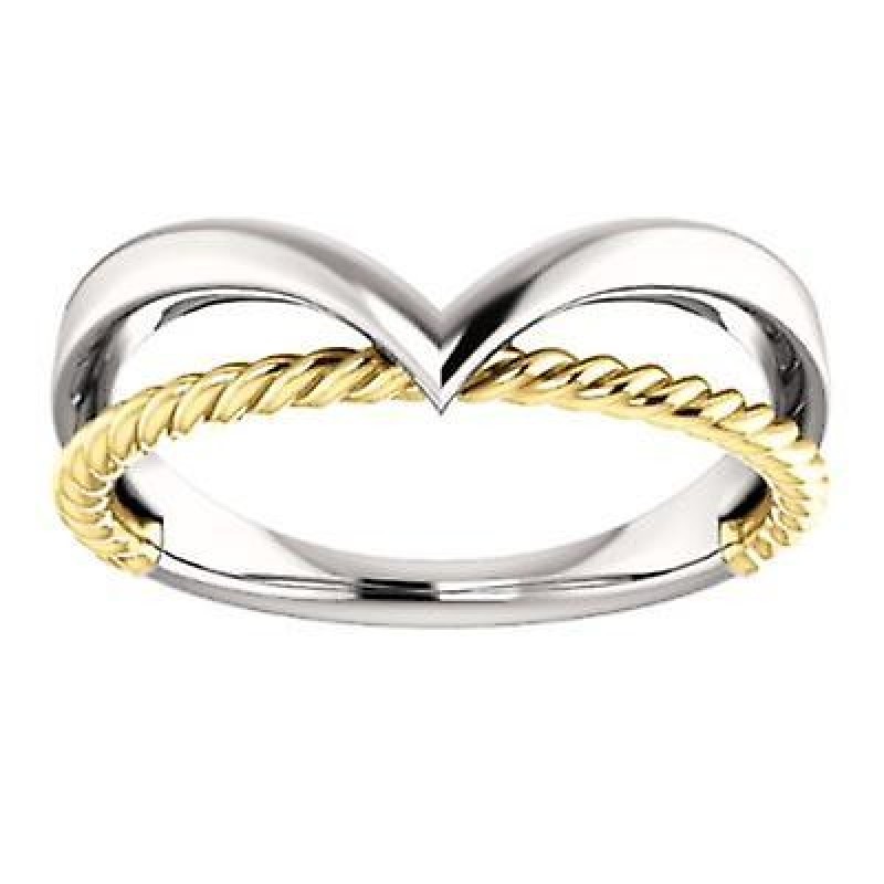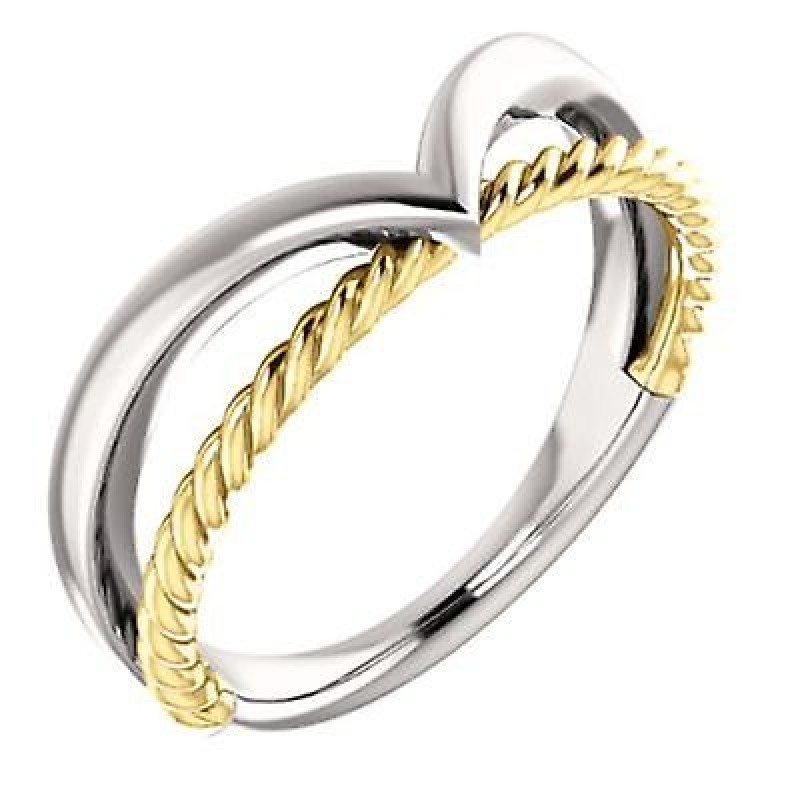 Bague en or blanc 14 carats et or jaune poli avec corde à espace négatif, taille 6,5, bijoux cadeaux €1500.0 |