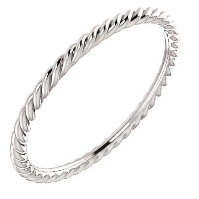 Bague fine en or blanc 14 carats, taille 8, polie - 1,3 gramme en or blanc 14 carats - Coffret à bijoux prêt à offrir inclus
